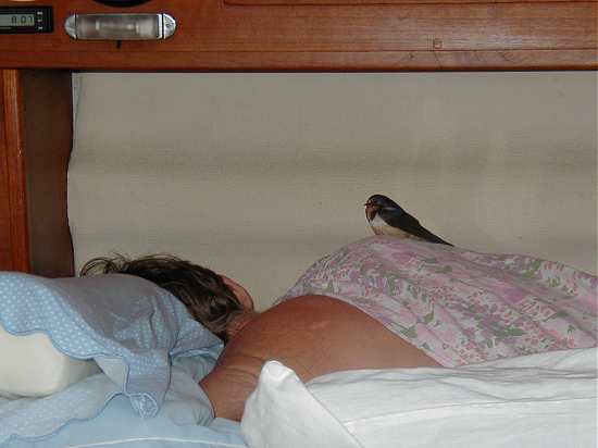 Hitchiking bird rests with Leo on an offshore passage